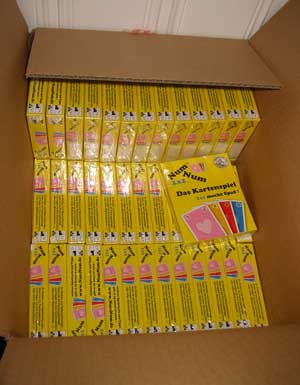 Das Foto zeigt eine angebrochene Kiste. Jede Kiste enthält jeweils 78 Spiele.