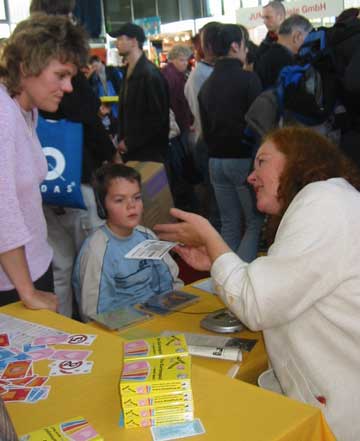 Auch diesmal bin ich besondes stolz auf die Kaufquote: Von den Interessierten, die mindestens eine NumNum-Partie mitspielten, kauften mehr als 80% das Spiel! Diese Mitspieler waren hauptsächlich Familien mit Kindern ab circa 7 Jahre. |