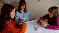Erste Spiele mit dem Prototyp. (v.l.n.r Eva, Isa, Anja)