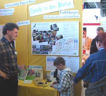das Angebot des bio-Scouts Thomas Klingseis, der den Kindern mit seinem Mikroskop die acht Augen der Spinne oder den Stechrüssel der Mücke "näher brachte". | |||