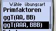 Alle vier Grundrechenarten, Primfaktorzerlegung und "Größter gemeinsamer Teiler" können geübt werden. | ||||||||